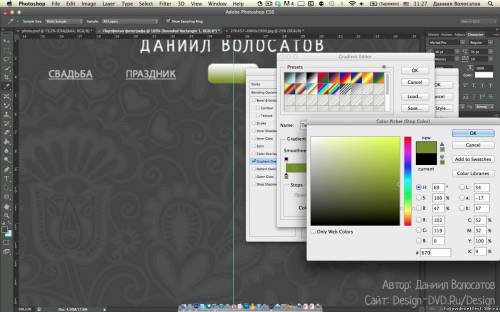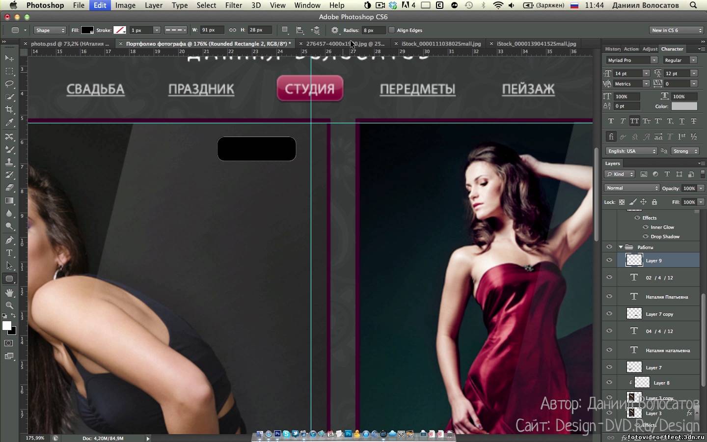 Фотографу для успешной работы и привлечения клиентов, необходим сайт визитка, где он сможет разместить свое портфолио. Как сверстать такой сайт с удобной навигацией и красивым дизайном с помощью программы фотошоп, Вы узнаете из урока от Даниила Волосатова. Дополнительно: В архиве дополнительные материалы для урока Файл Формат: mov Качество: DVD Видео: MPEG4 Video (H264) 1440x900 30.00fps Звук: AAC 44100Hz stereo 1411kbps Размер: 567.31 MB